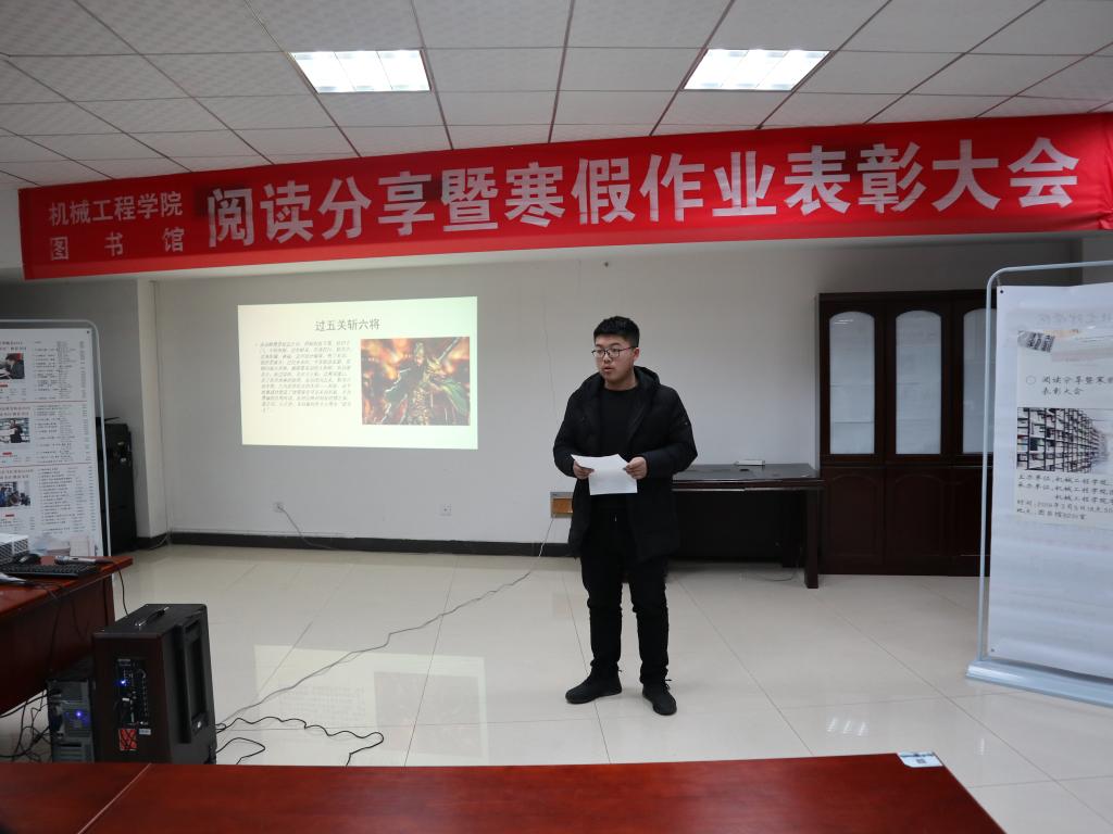 此次活动分为“阅读分享”和“寒假作业表彰”两个环节。首先开展以“读经典书,做书香人”为主题的阅读分享赛。有十二名同学按抽签顺序依次上台分享自己的读书感悟。