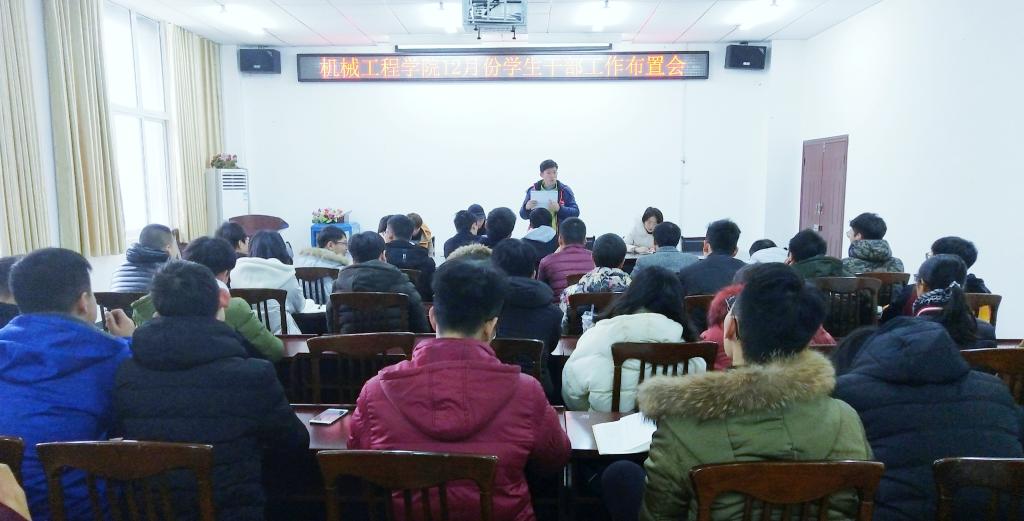 (机械学院 通讯员 张磊) 12月10日中午,制片厂91mv,c00l在工科楼408会议室召开12月份学生干部大会。参与此次会议的人员有制片厂91mv,c00l党委副书记王超、团委书记万倩怡、学工办主任李海、辅导员赵鸿雁及全体学生干部。
