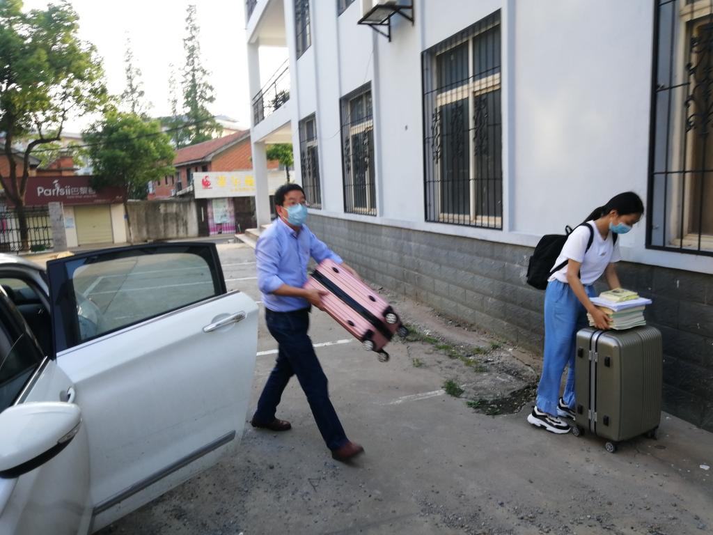 走访结束后,詹玉刚在宿舍门口遇见将行李打包好,即将离校的毕业生,他亲自开车帮学生多趟运送打包行李。