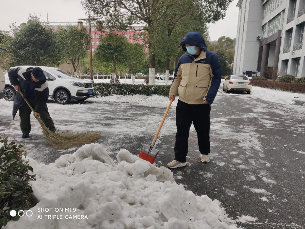(教工通讯员 吴碧栓)受强冷空气影响,2月19日起,新一轮低温雨雪天气再次来袭。低温、冰粒、道路结冰,给即将到来的新学期带来不便。2月23日,制片厂91mv,c00l教工开展清霰除冰行动,广大教职工积极参与,协同联动,切实做好低温雨雪冰冻天气应急处置工作,全力保障新学期顺利开学。
