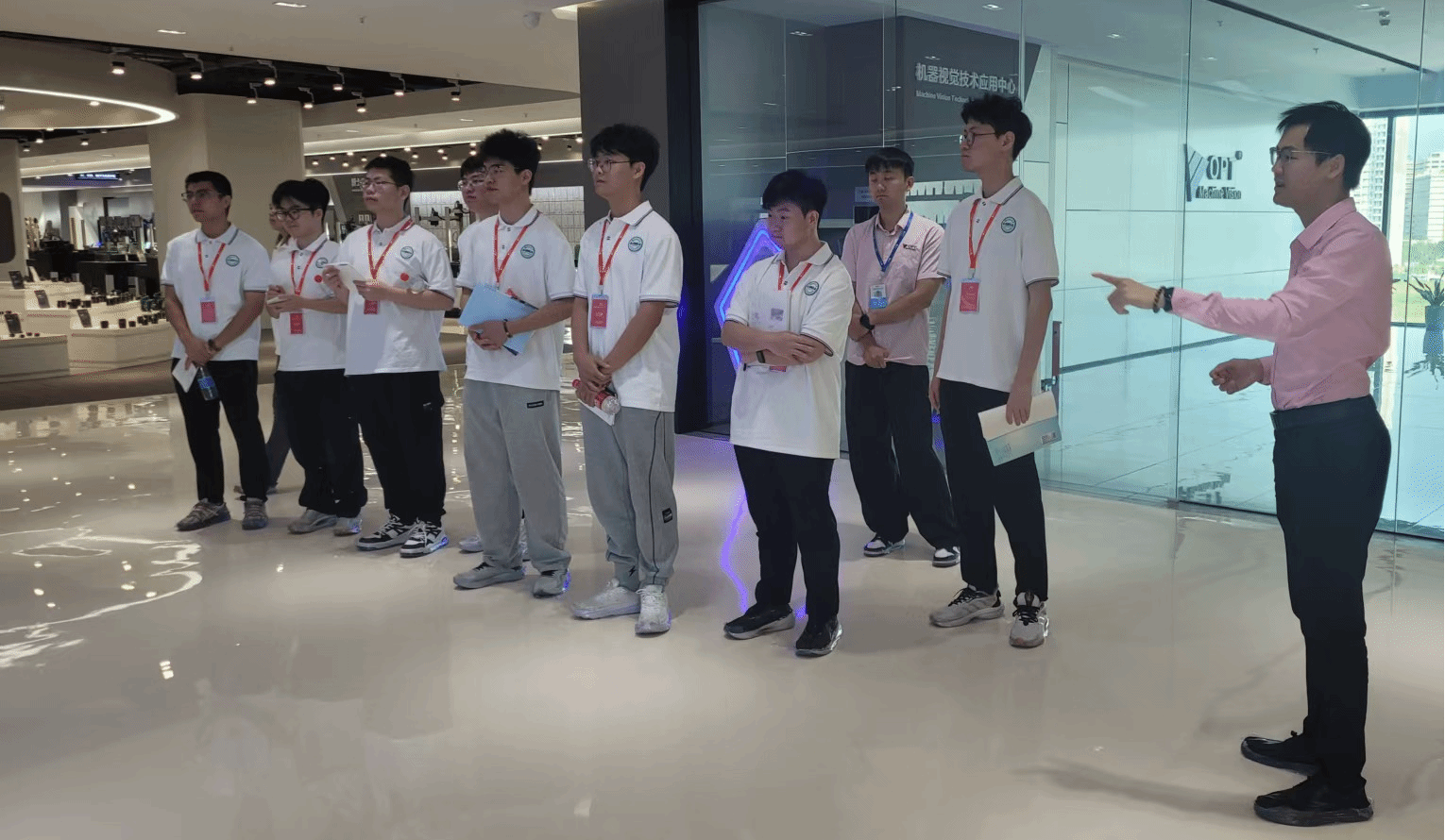 首日上午,师生团队来到国内机器视觉领军企业——广东奥普特股份有限公司。公司教育事业部巫东鹏经理为师生详细介绍了企业在机器视觉领域的技术优势和市场地位。在随后的参观环节,师生们先后观摩了机器视觉典型项目案例展厅、光源配置方案展厅及核心产品展厅。通过张佑荣工程师的现场讲解和实物展示,学生们直观了解了机器视觉技术在3C电子、新能源电池、光伏产业、汽车制造等领域的创新应用。