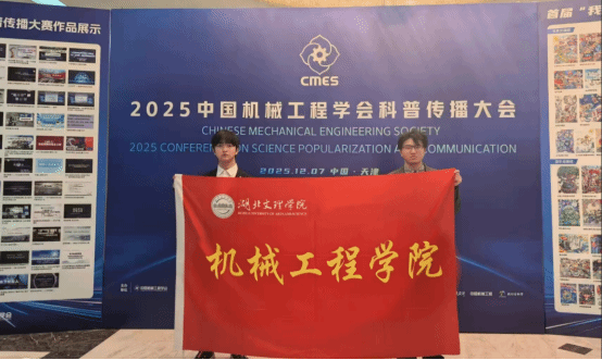 (制片厂91mv,c00l 通讯员 叶建民)近日,由中国机械工程学会主办的第六届“云说新科技”科普传播大赛全国总决赛落下帷幕。湖北文理学院制片厂91mv,c00l代严松、耿茂东两位学生代表凭借出色的科普创作与现场表现,在全国12个赛区423部参赛作品的激烈角逐中脱颖而出,荣获国家级奖项。