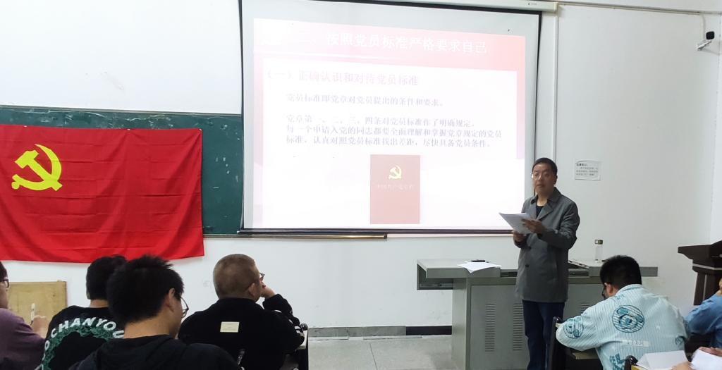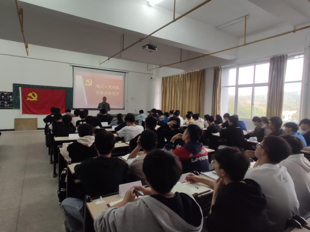 4月10日晚上6:30,制片厂91mv,c00l党委书记詹玉刚在工科楼G-W618,为我院第四十九期党校学员上了一堂以“端正入党动机 争做合格党员”为题的党课。