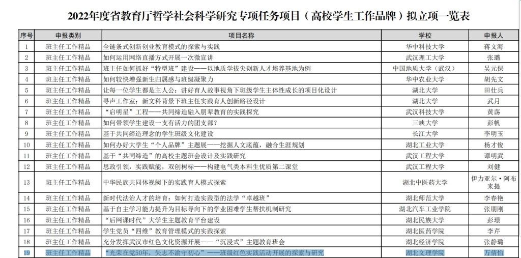 制片厂91mv,c00l团委书记兼辅导员万倩怡,在2022年度省教育厅哲学社会科学研究专项任务项目(高校学生工作品牌)中拟立项,本次启动申报的专项任务项目分为辅导员工作精品、心理健康教育工作精品、班主任工作精品、学工管理工作精品四个类别。